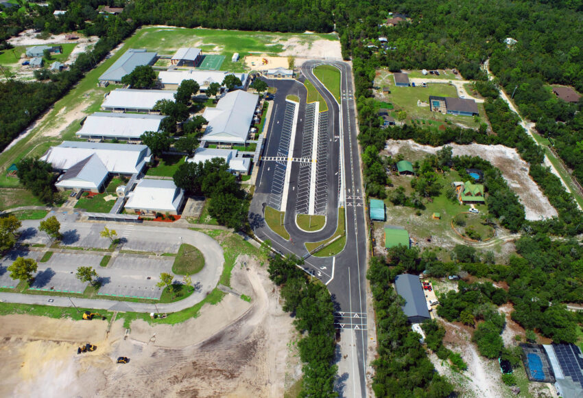 New 7-classroom building and site upgrades at South Sumter Middle School, including drop-off lanes and modern classroom facilities.
